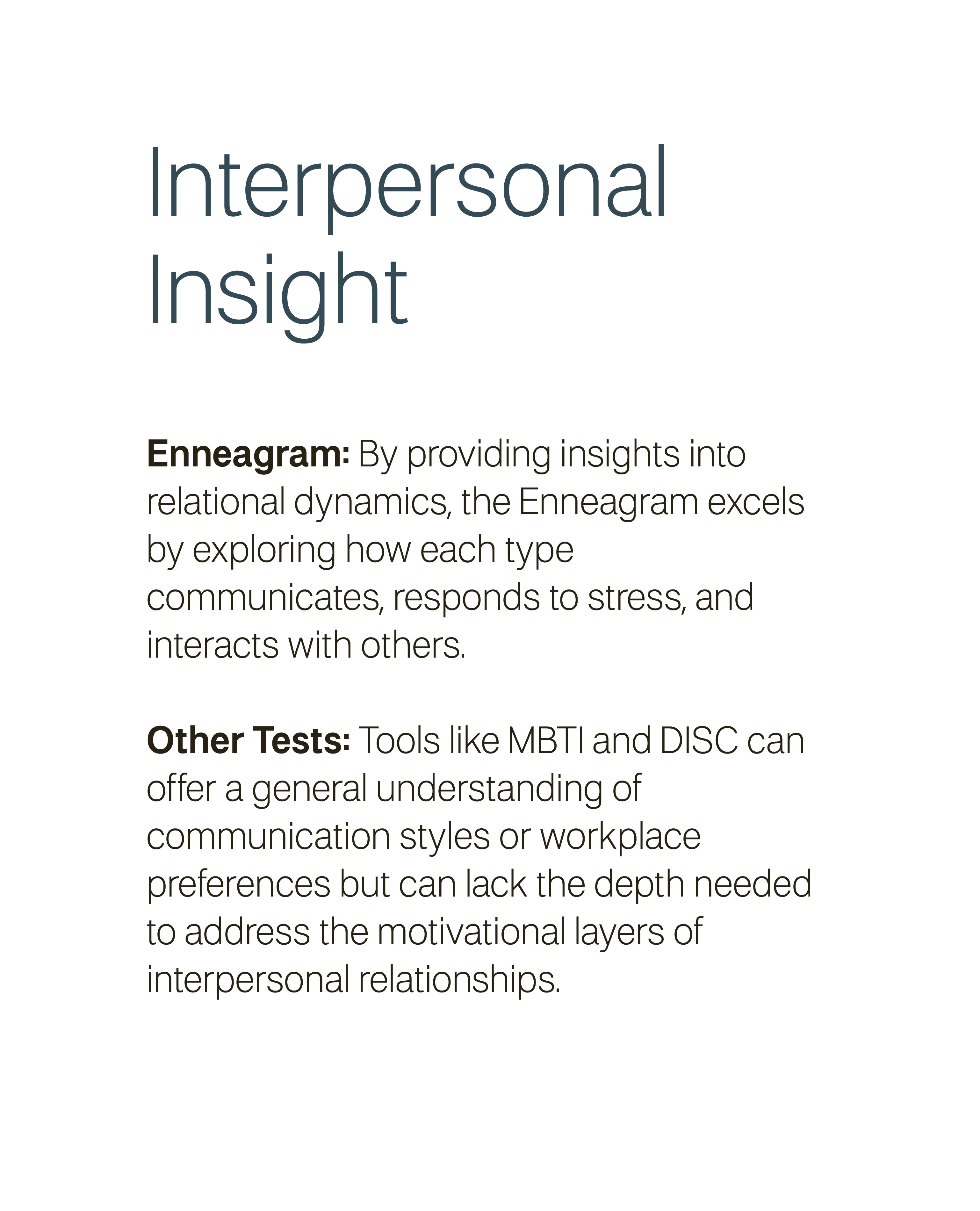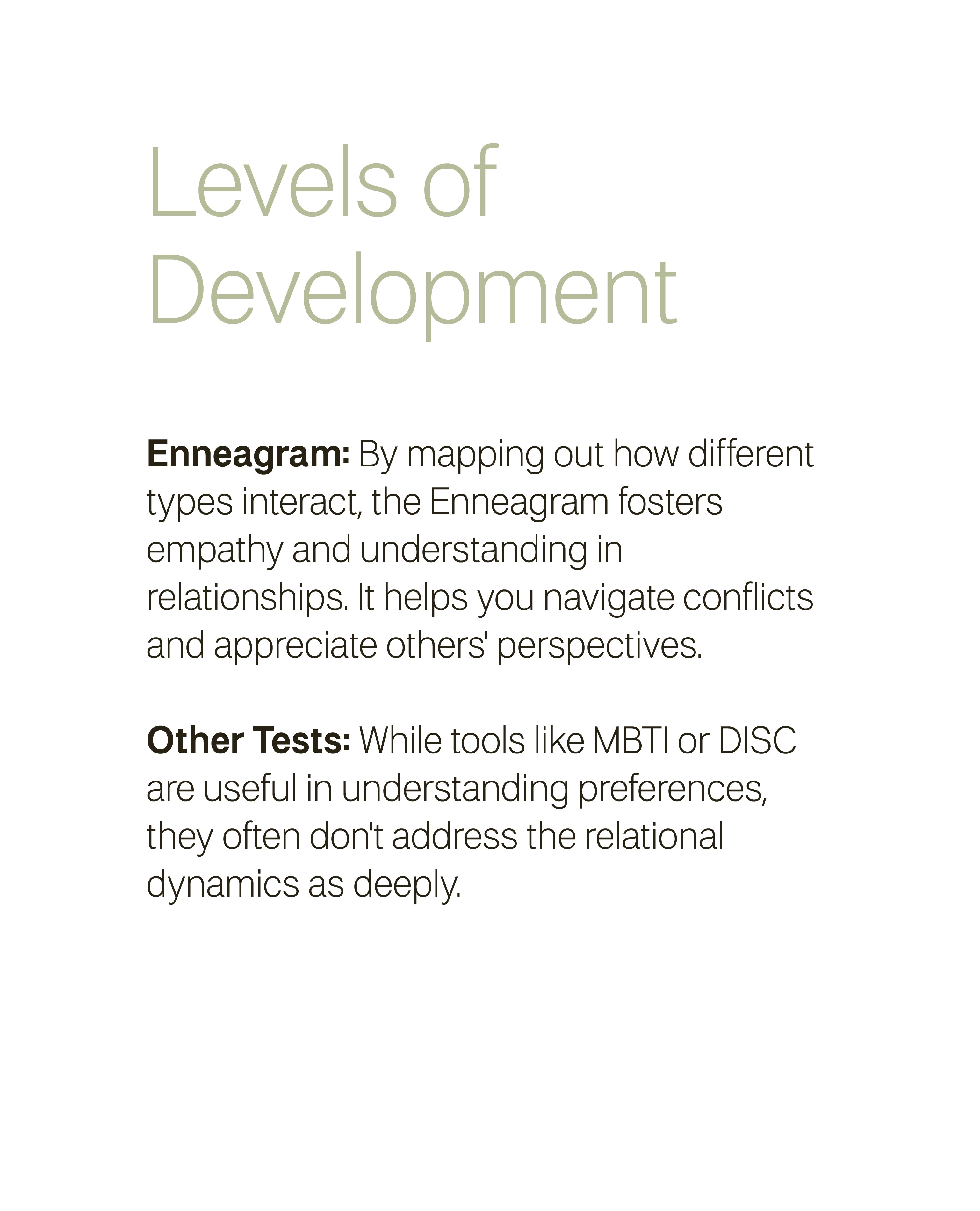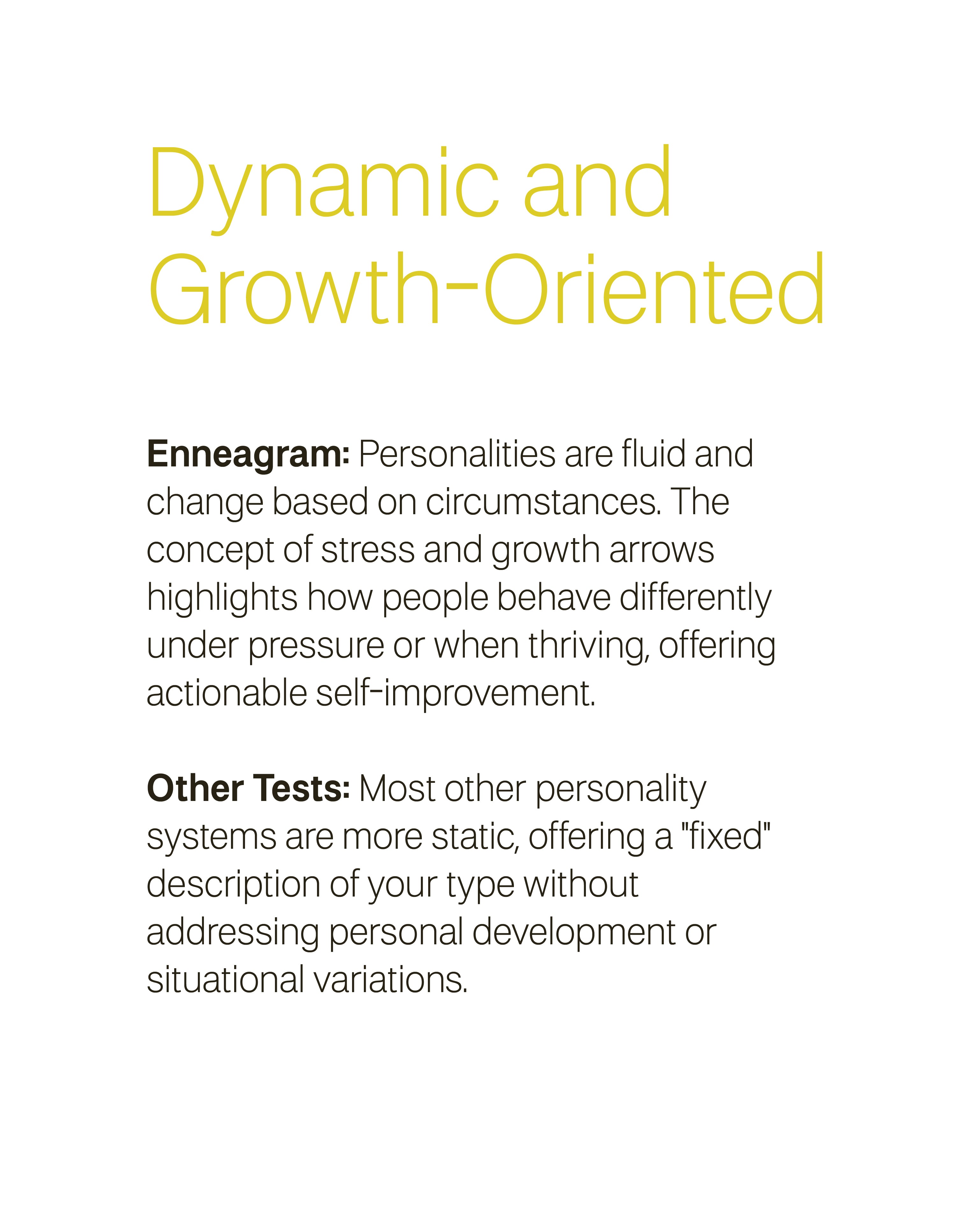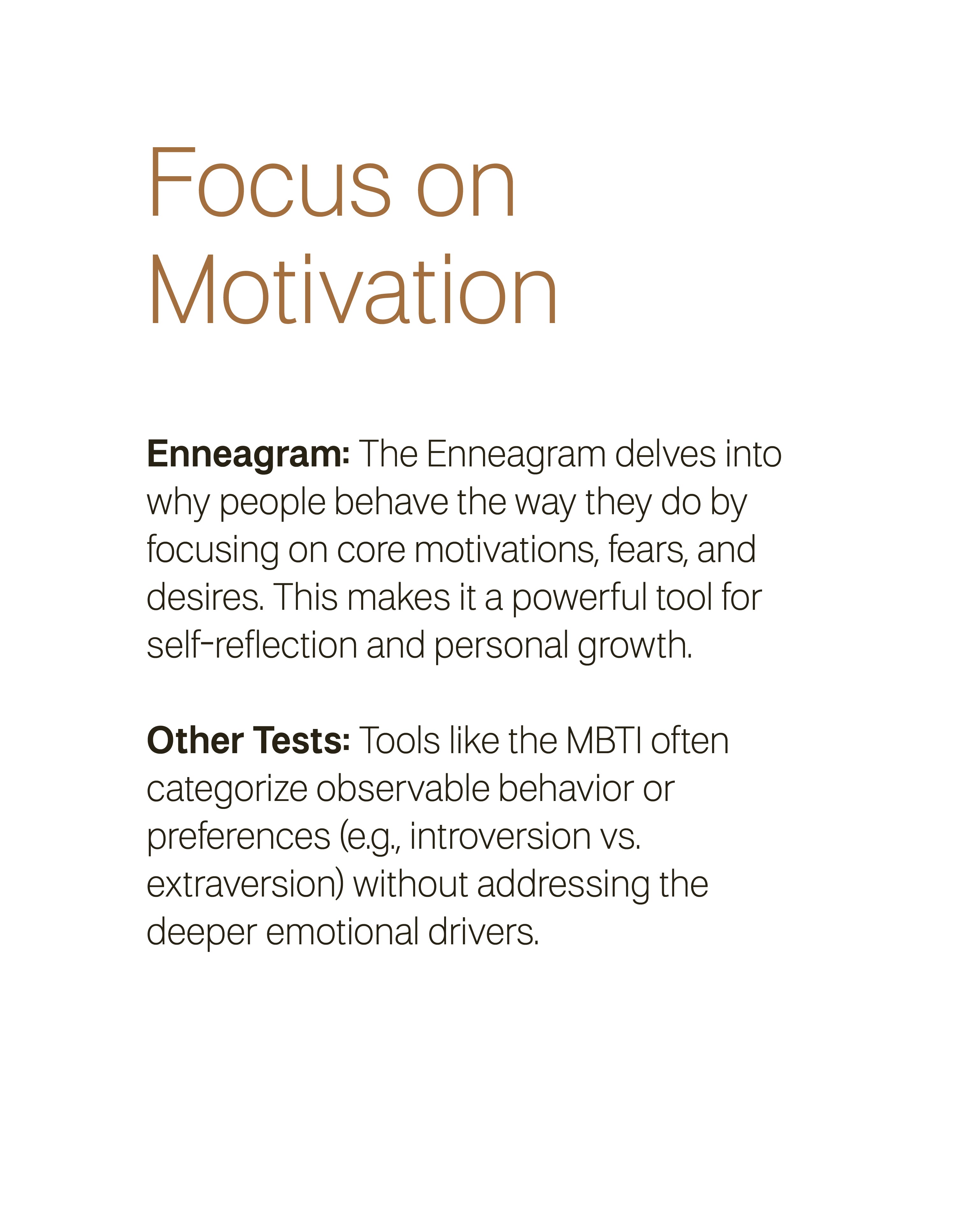 The Enneagram stands out from other personality tests like the Myers-Briggs Type Indicator (MBTI), Big Five, or DISC in several ways. While its effectiveness depends on individual needs and preferences, many prefer the Enneagram for the following reasons:
